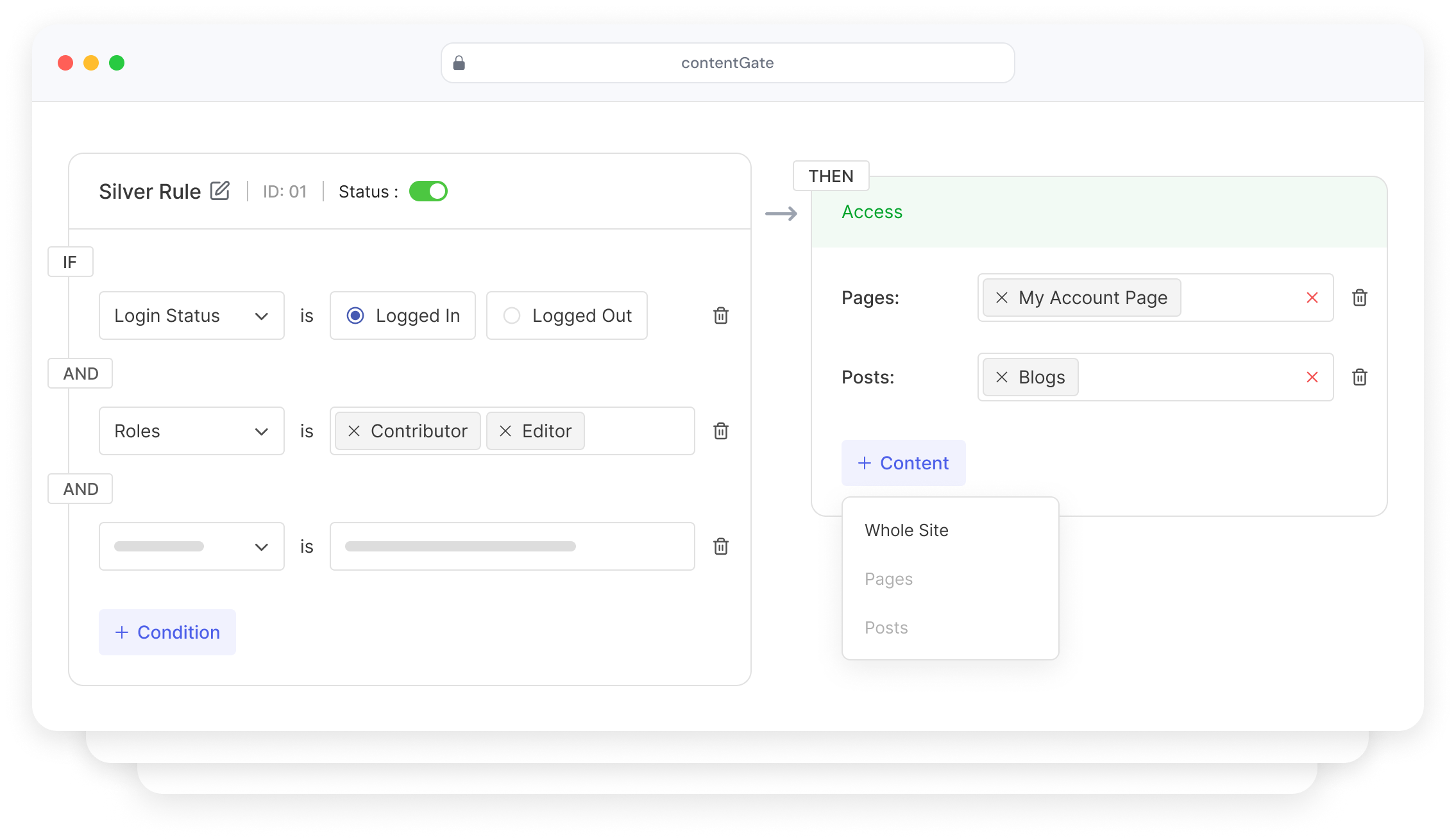 Download and activate ContentGate from the WordPress plugin directory in seconds. No setup wizard needed.
